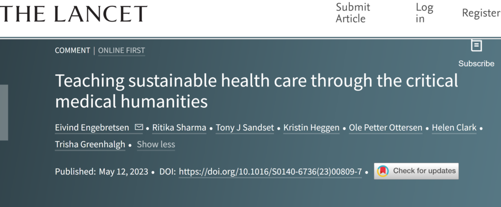 The Centre for Sustainable Healthcare Education at the University of Oslo’s Faculty of Medicine takes on a medical humanities approach to the teaching of SDGs that you can read about in our recent Comment published in The Lancet.